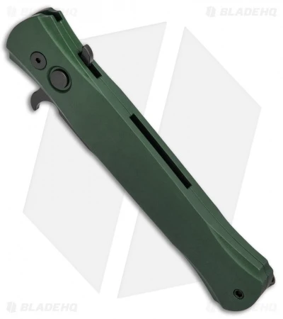 This Don knife features a solid, smooth green anodized aluminum handle. The blade is black finished along with the deep carry pocket clip and hardware.